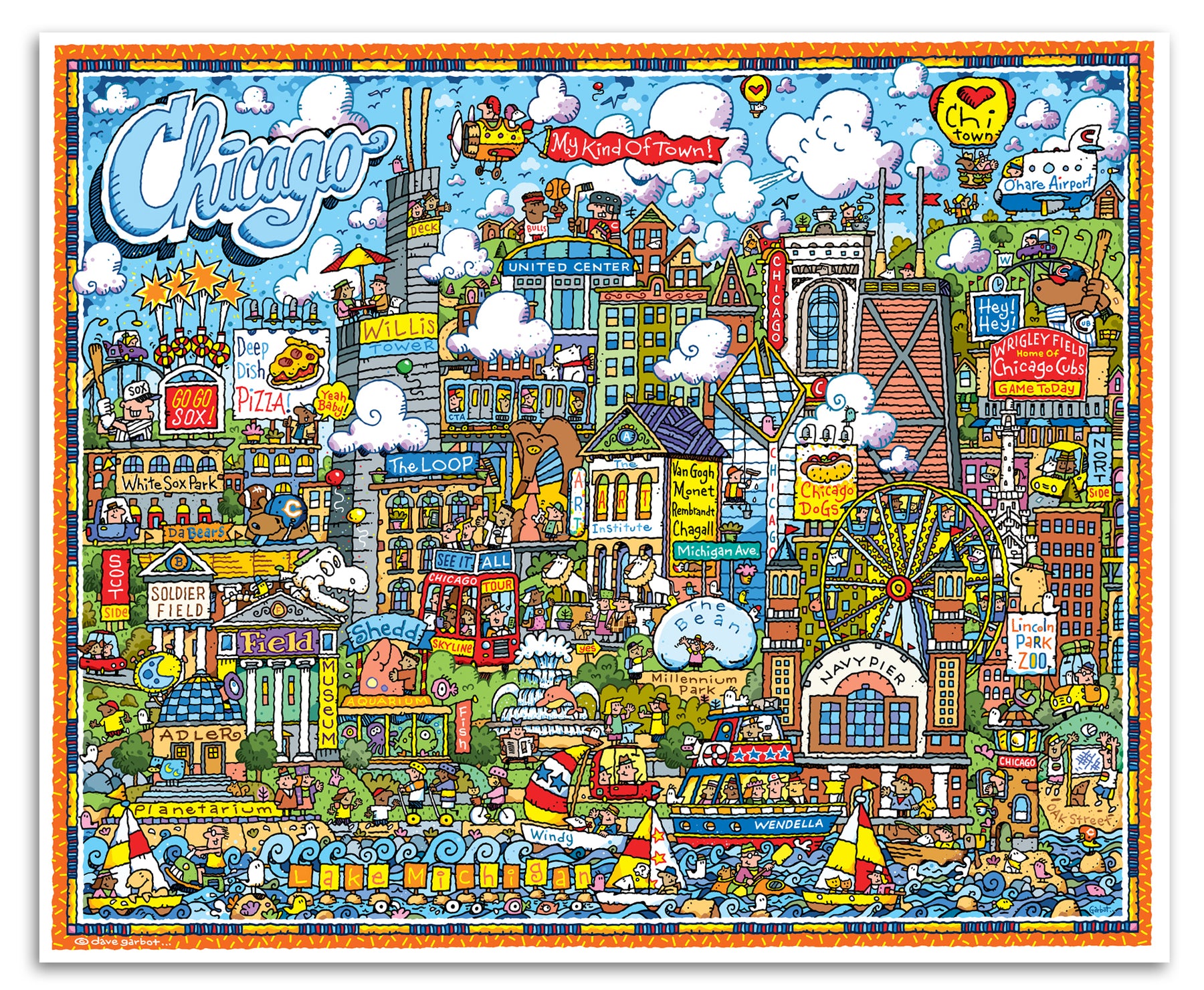 At 11" x 14", this lively print is packed with Chicago's most beloved landmarks. From deep dish pizza to the Bean and beyond, every bit of this drawing brings a new discovery (and maybe a laugh or two). Printed on archival linen paper, it can easily be displayed in any standard frame of your choice. Perfect for any room in your home, or business!